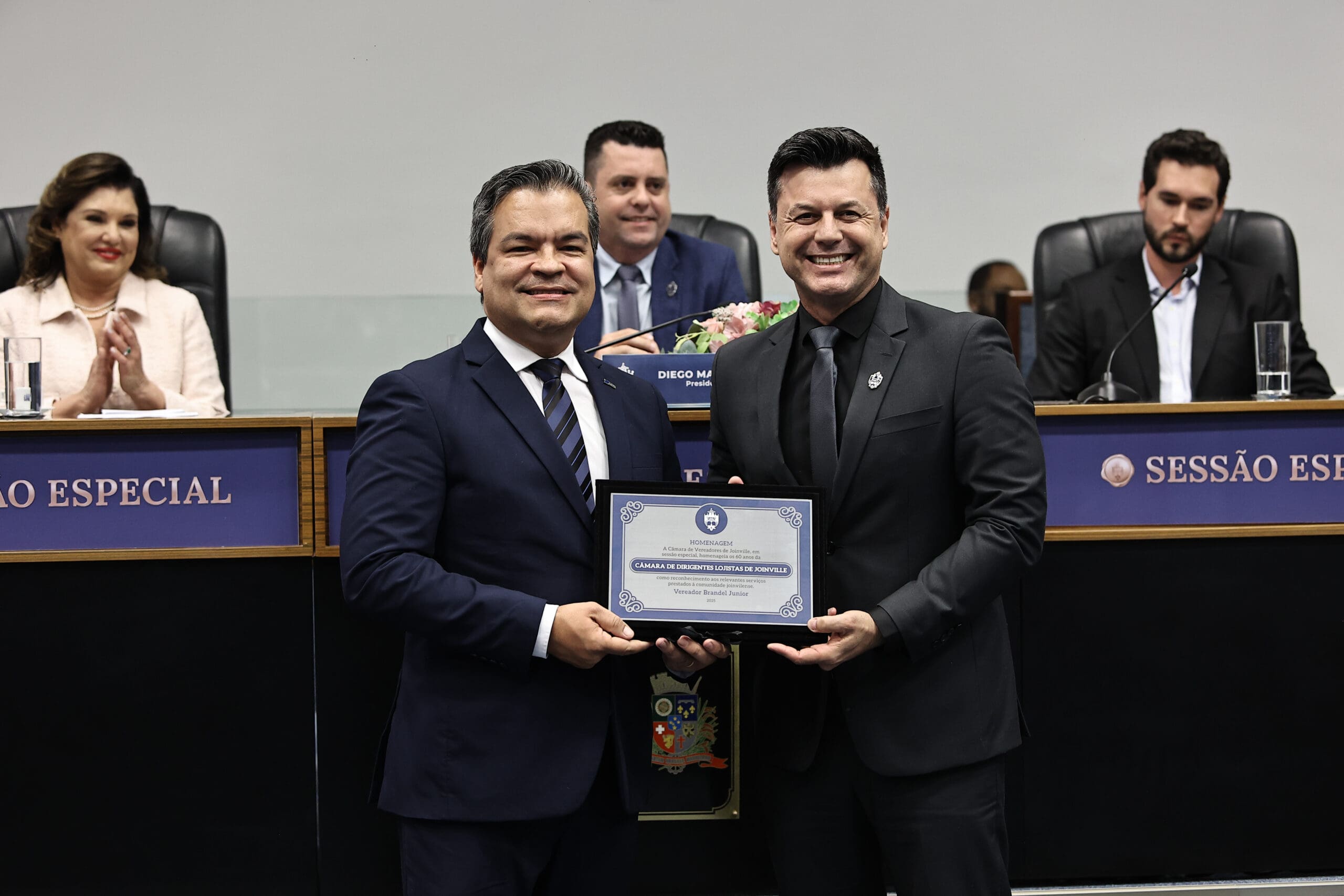 O presidente da CDL Joinville, Eduardo Mafra, agradeceu a homenagem em nome da entidade: “Celebrar 60 anos da CDL é celebrar a história de milhares de empreendedores que acreditaram na força do associativismo e no comércio como motor de desenvolvimento da nossa cidade. Essa homenagem nos enche de orgulho e também de responsabilidade para seguir trabalhando pelo futuro de Joinville.”