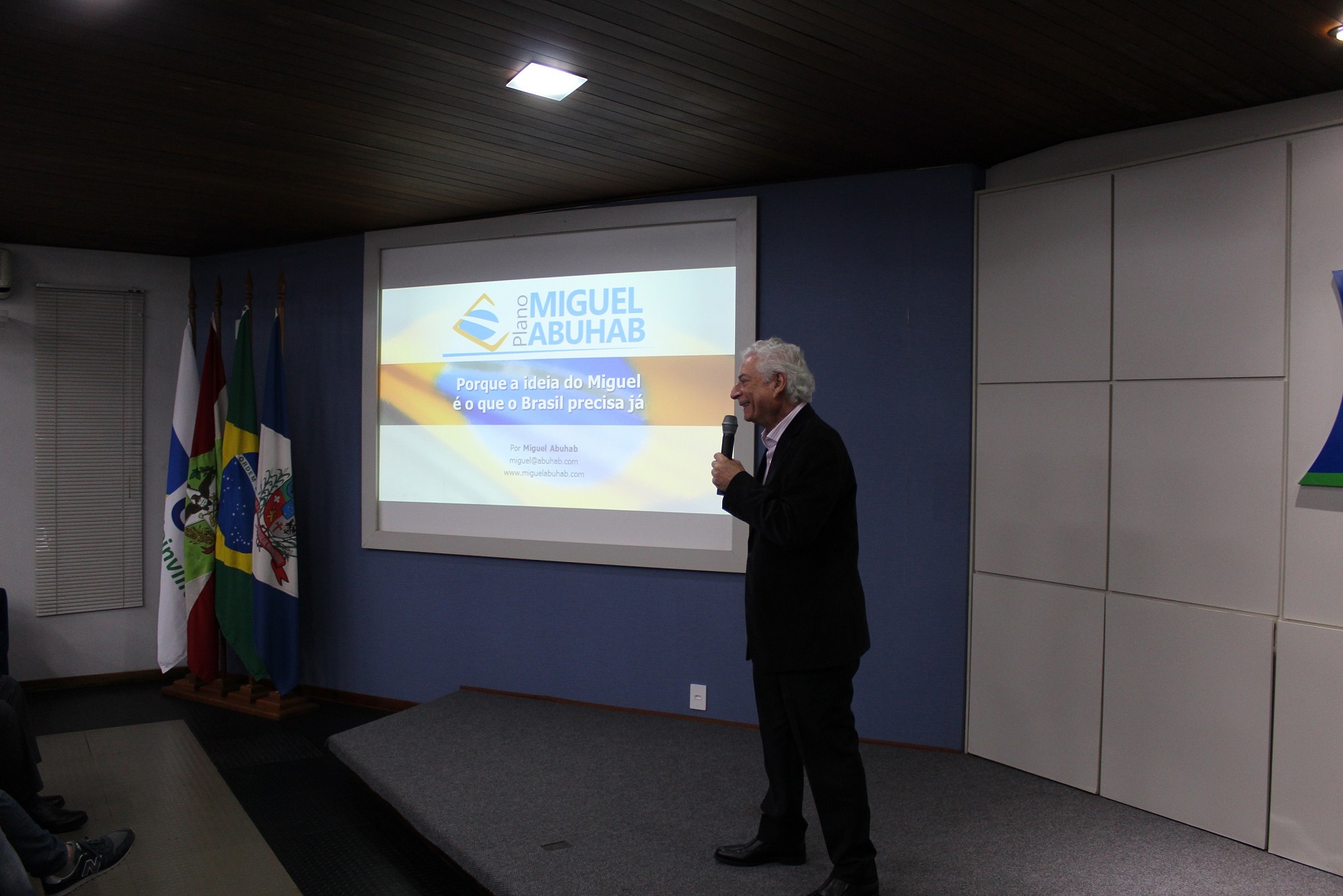 O empresário defendeu as ideias que tem levado ao Congresso Nacional e até a outros países. Também compartilhou expectativas de mudanças e respondeu a questionamentos da plateia.